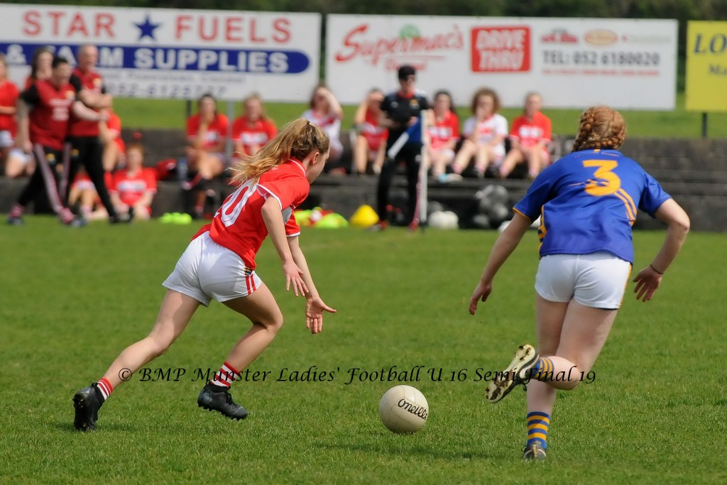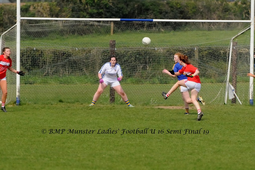 East Cork were very well represented with Caragh Byrne (Glanmire) in goals and Sally McAllister (Aghada), Dara Kinery (Lisgoold) solid in the full back line and Aimee Corcoran (Erins Own) controlling the centre back position Rachel Leahy (Aghada) was outstanding at half forward with Olivia McAllen (Glanmire) playing a captains part at centre forward, Leah Hallihan (Bride Rovers) was an extremely effective corner forward and very well ably to score. Ciara Walsh (Carrigtwohill) was introduced just before the break and she was a live wire turning up just about any where scoring a great goal and making several other scores. Ciara O’ Riordan (Rockbán), Aishling McAllen & Orlaith Roche (Glanmire) & Clodagh O’Brien (Fermoy) are also on the Cork panel. We now look forward to another meeting with Kerry in two weeks in the Munster final