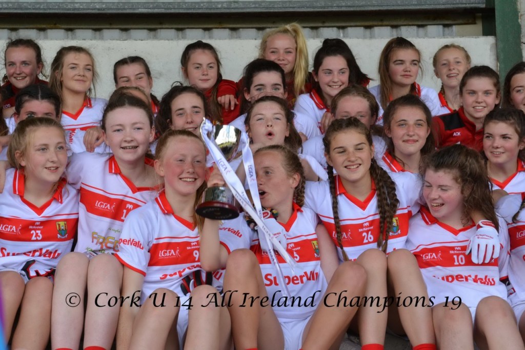 Last Saturday week the Cork Ladies’ Football U 14 team created their own bit of history when the became the first winners of the platinum grade U 14 All Ireland championship, This replaced the old “A” grade championship last won by Cork in 2013. They comprehensively defeated Galway in a one sided final to finish off a great year. Due to the new format and rules of the competition 30 of the girls on the panel got to play in the final in total 59 girls played in the final which was great to see. Congratulations and very well done to all concerned a mighty achievement