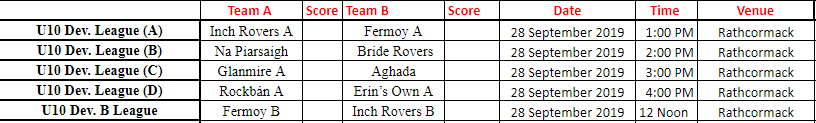 - Venue: Bride Rovers (Rathcormac)
