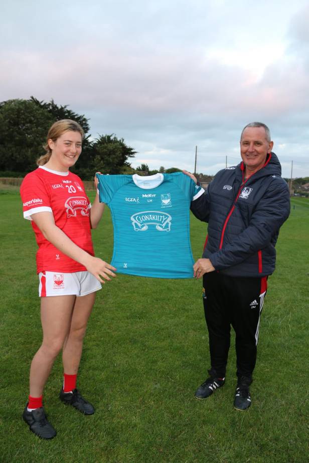 Middle: u16 Captain Lia Heffernan (St Marys) with Manager Denis displaying the new McKeever jerseys with Clonakility sponsorship.