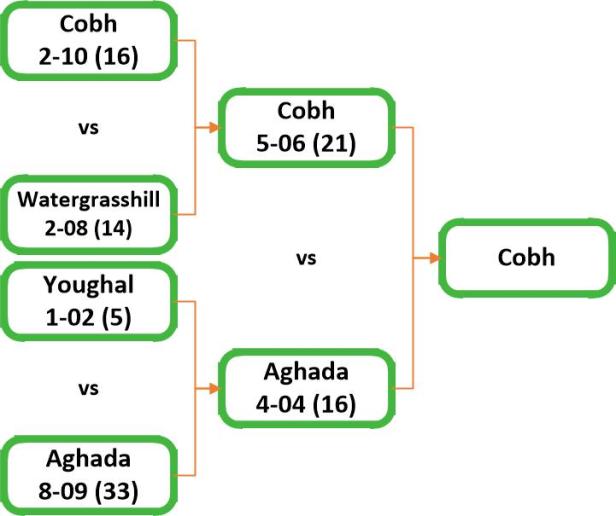 Top 2 teams will qualify for East Cork League semi-finals. Winners will qualify for the ‘C’ League final and the ‘C’ County Championship quarterfinal. Beaten semi-finalists will qualify for the ‘D’ League final and the ‘D’ County Championship quarterfinal.
